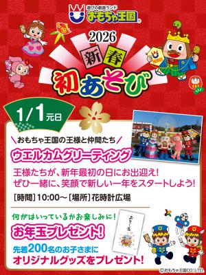 - ウエルカムグリーティングやカルタ大会、たこあげ、書道パフォーマンスなど、2026年1月1日からおもちゃ王国ではイベントが盛りだくさん!