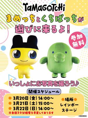 おもちゃ王国に「まめっち」「くちぱっち」が遊びに来るよ。